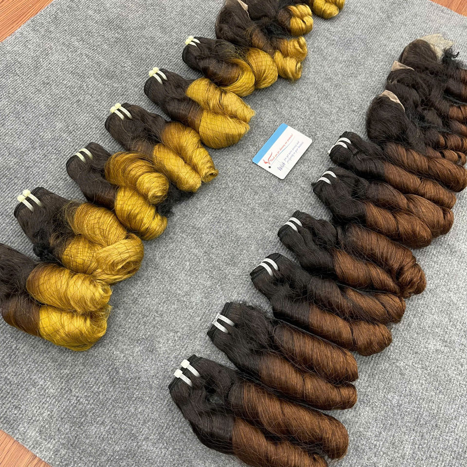 Extensiones de cabello Remy humano 100%, paquetes de tejido suave rizado hinchable, máquina vietnamita, rizos hinchables de vapor de doble trama