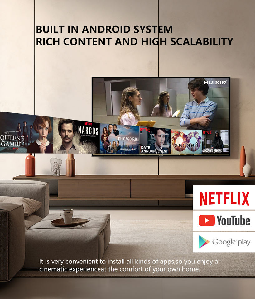 100 pulgadas 4K UltraHD Televisión a prueba de explosiones 4mm Vidrio templado Carcasa de metal Android Smart TV