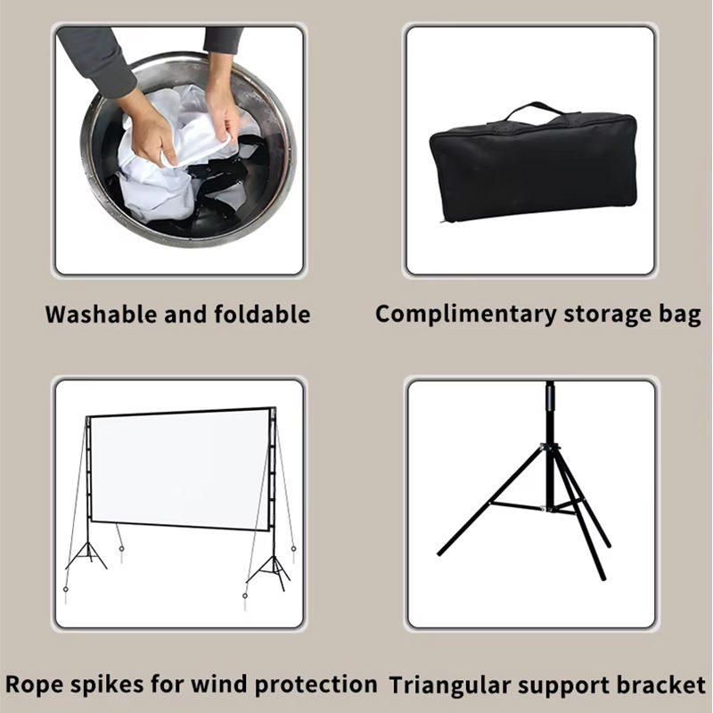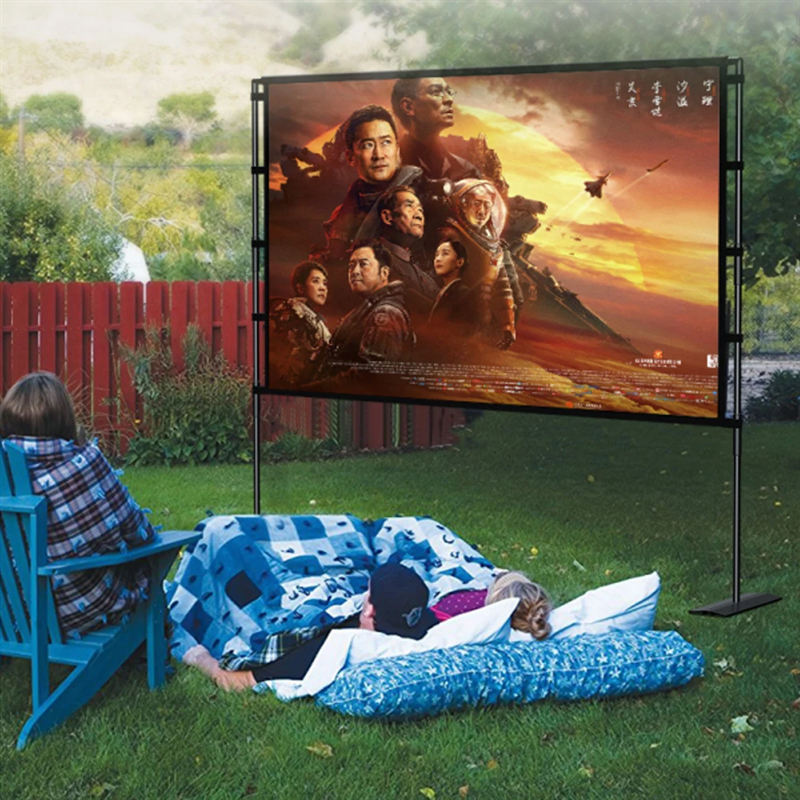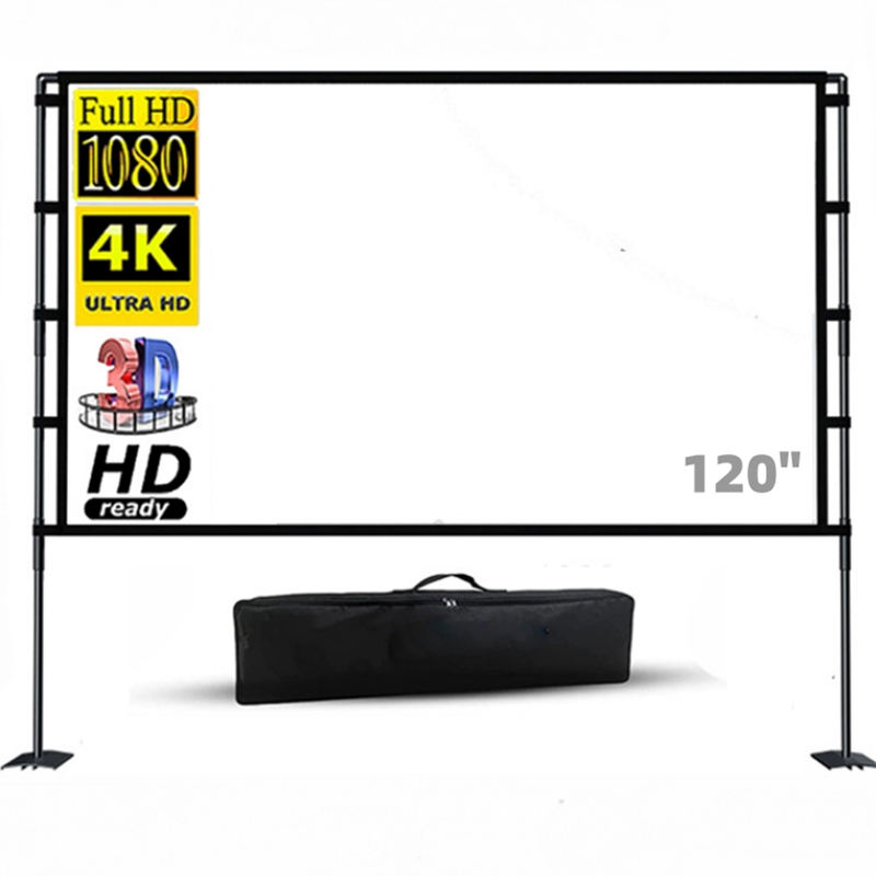 Pantalla de proyección de trípode doble de 100 pulgadas, pantalla de cine plegable de 120 pulgadas con soporte de 2m para cine en casa al aire libre, proyector de tiro largo