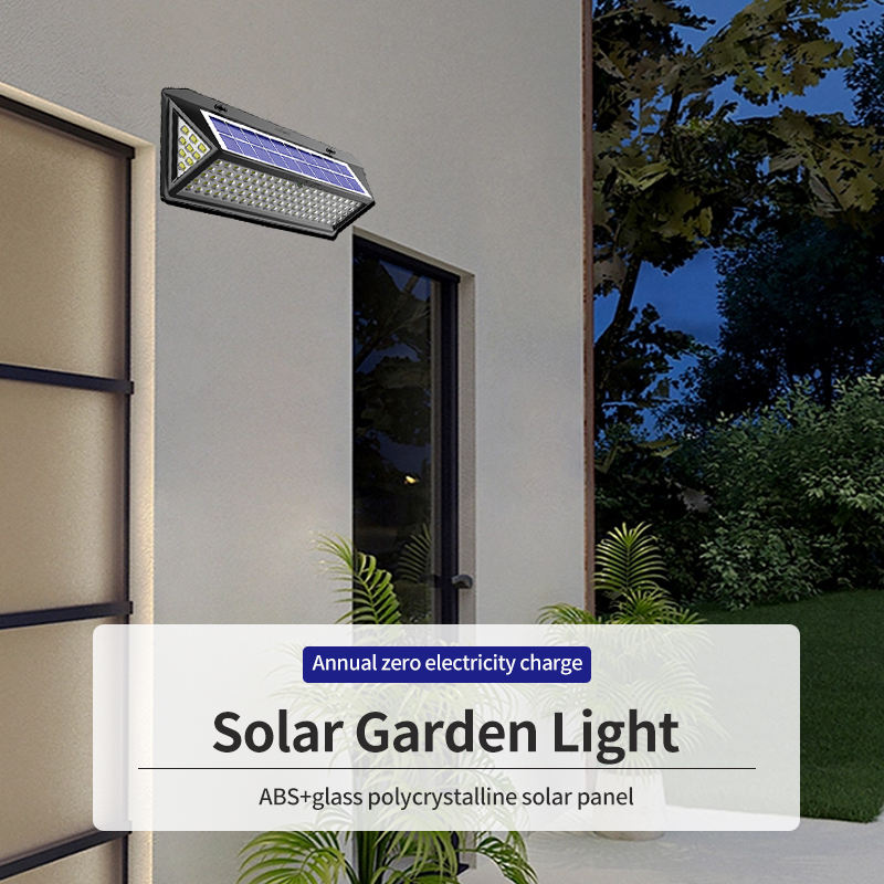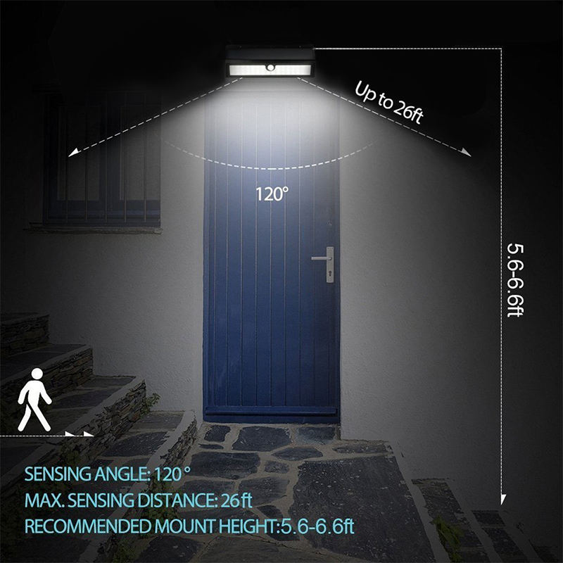 100 LED Sensor de movimiento Solar Powered Pathway Flood Alumbrado público Led Lámpara de pared Luces solares impermeables para exteriores para jardín
