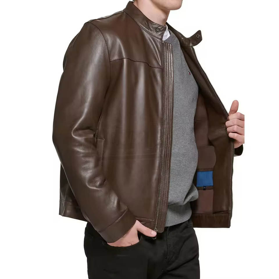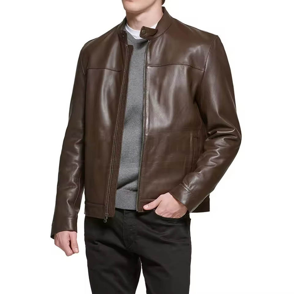 Chaqueta de Cuero 100% Estilo Casual para Hombre, Chaquetas para Hombre, Nuevo Estilo Vintage, Nuevo Diseño, Transpirable, Color Sólido, Chaqueta de Cuero para Hombre