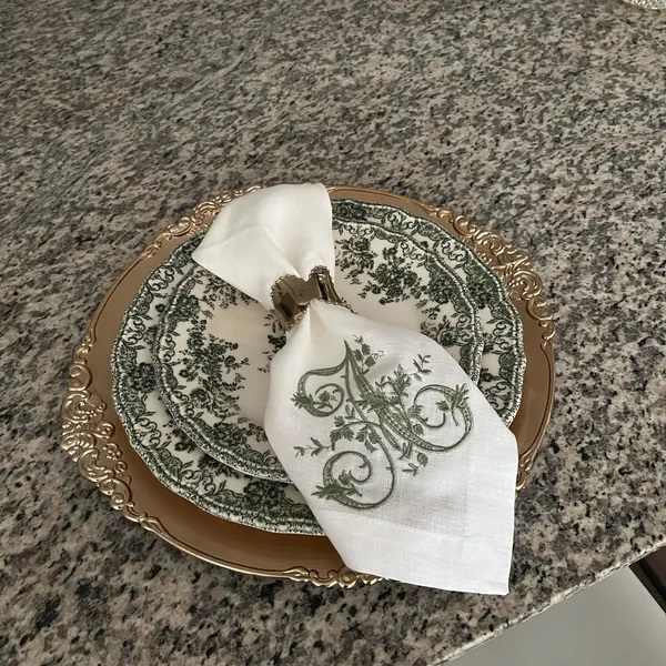 Servilleta de Lino 100% para Boda, Elegantes Servilletas de Tela, Monograma Personalizado Bordado, Servilleta Hecha a Mano para Accesorios