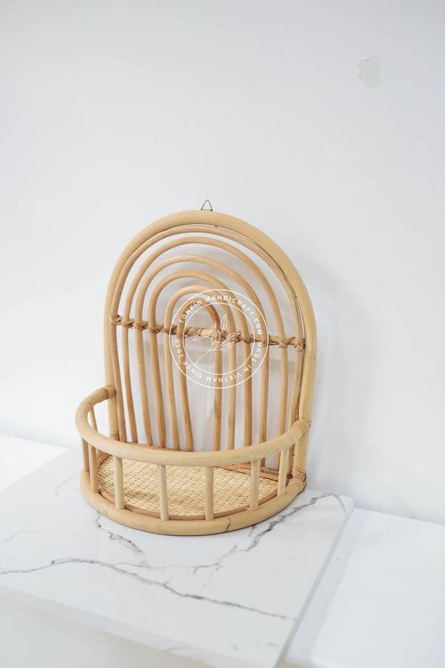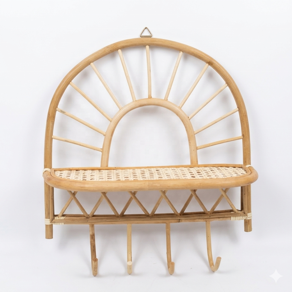 Estantes Colgantes de Pared de Ratán Natural Hechos a Mano al 100%, Estilo Boho Arcoíris Vertical, para Niños, Decoración del Hogar
