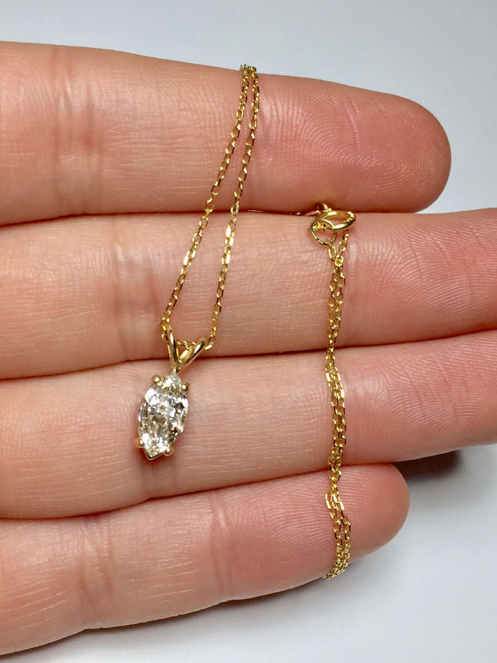 100% Natural 1,00 quilates solitario Marquesa corte diamante colgante 14K oro amarillo diamante colgante solitario diamante colgante
