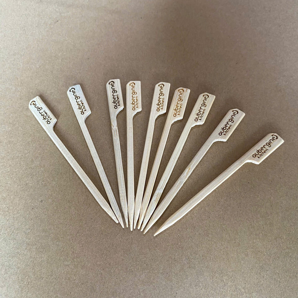 Venta al por mayor de fábrica, palitos planos de bambú para barbacoa, diseño personalizado, pinchos Teppo para asar a la parrilla