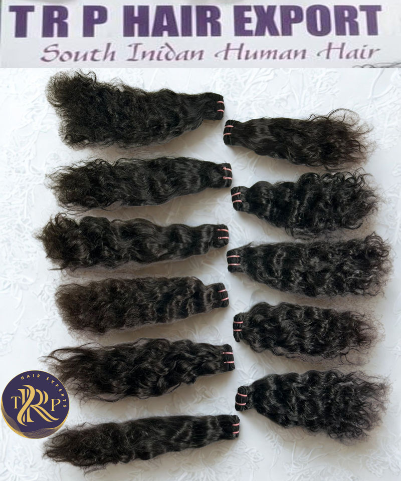 100% Cabello virgen negro natural Cabello de templo indio de alta calidad 10 \ "Trenzado ondulado con estilo Jerry Curl