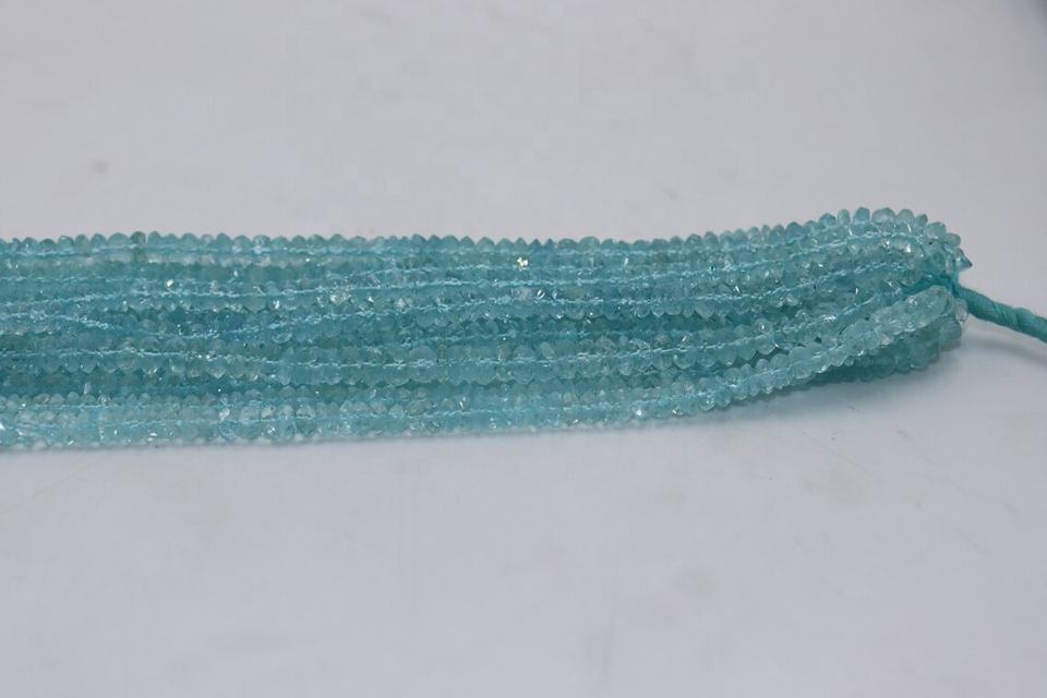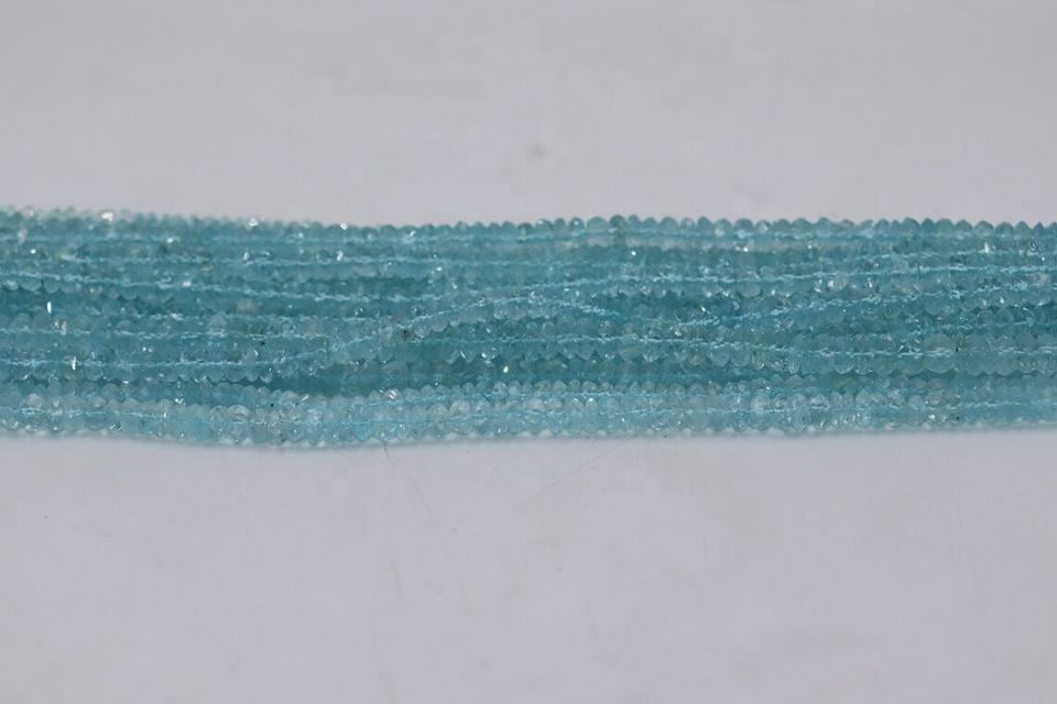 Nombre del producto:100% Natural Aguamarina Facetado Rondelle Cuentas