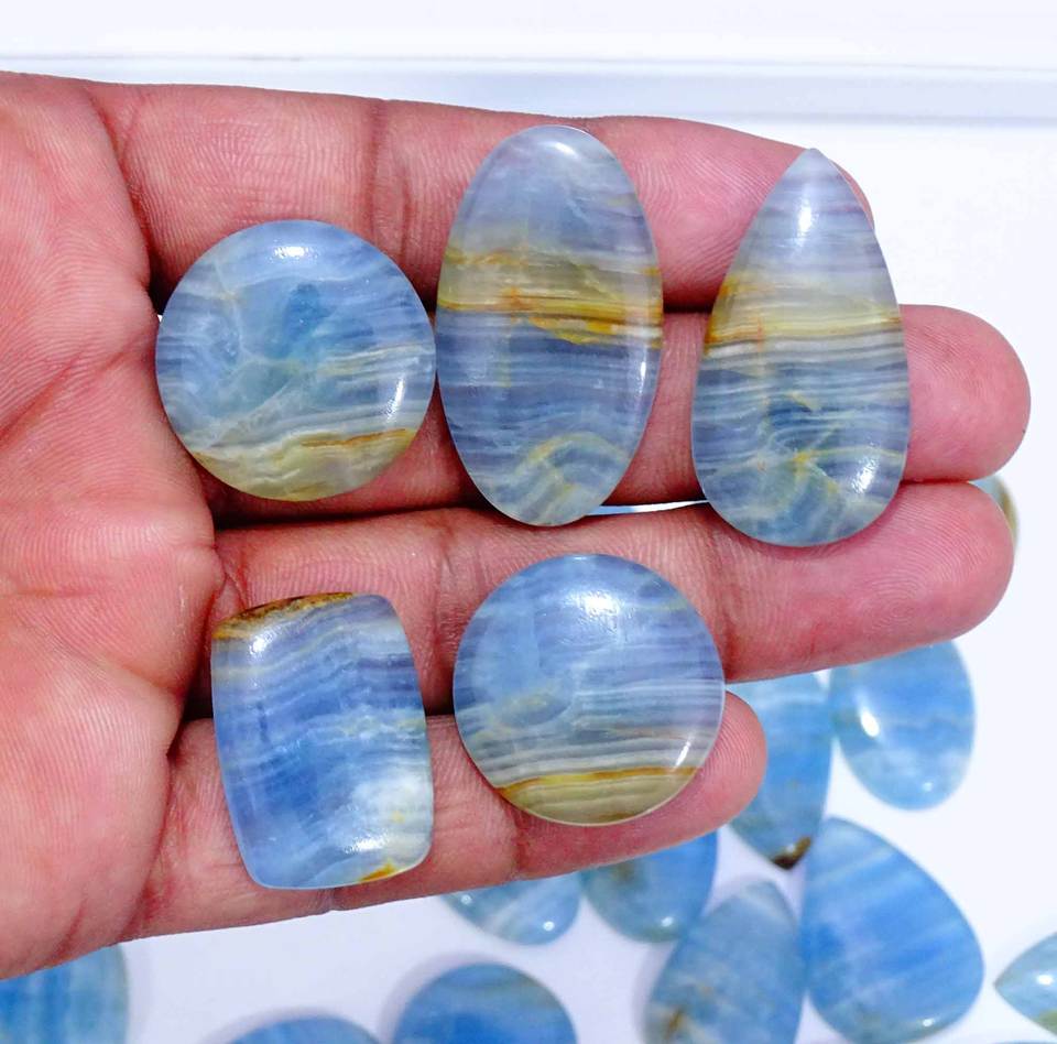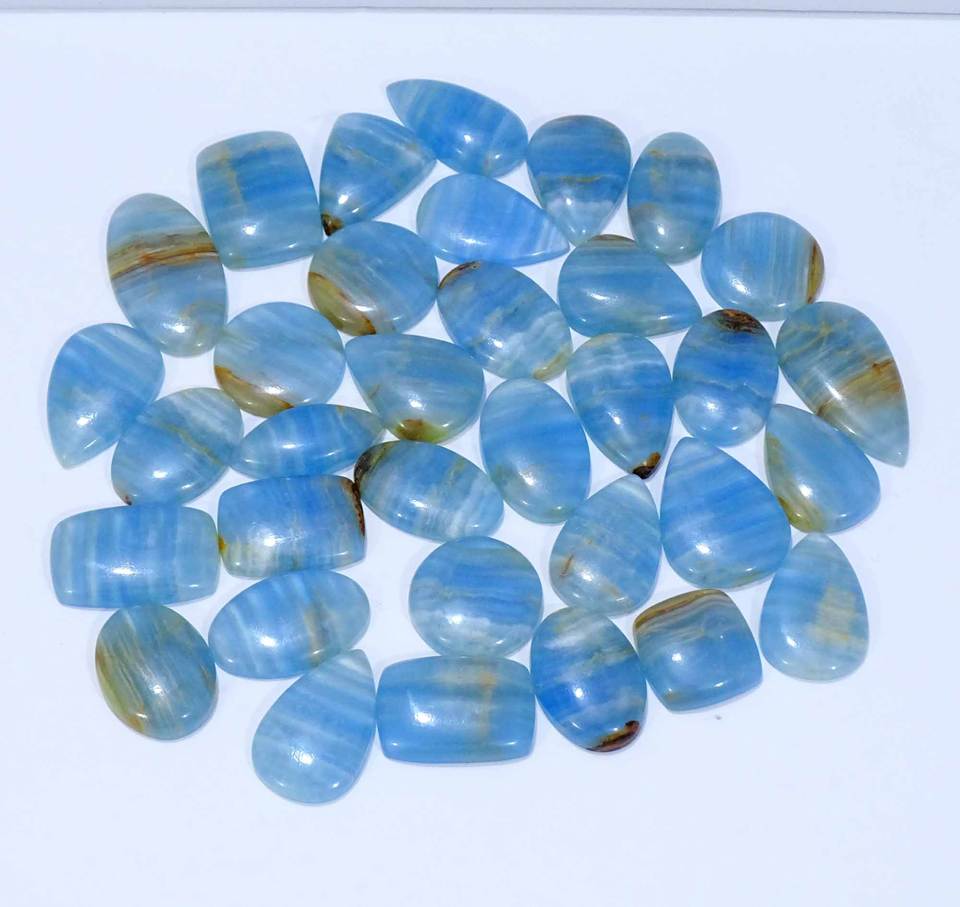 Lote de piedras preciosas sueltas de cabujón de calcita azul Natural 100%, forma y tamaño mezclados, piedras preciosas de calcita azul para uso en la fabricación de joyas