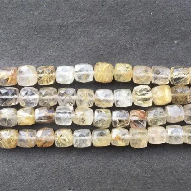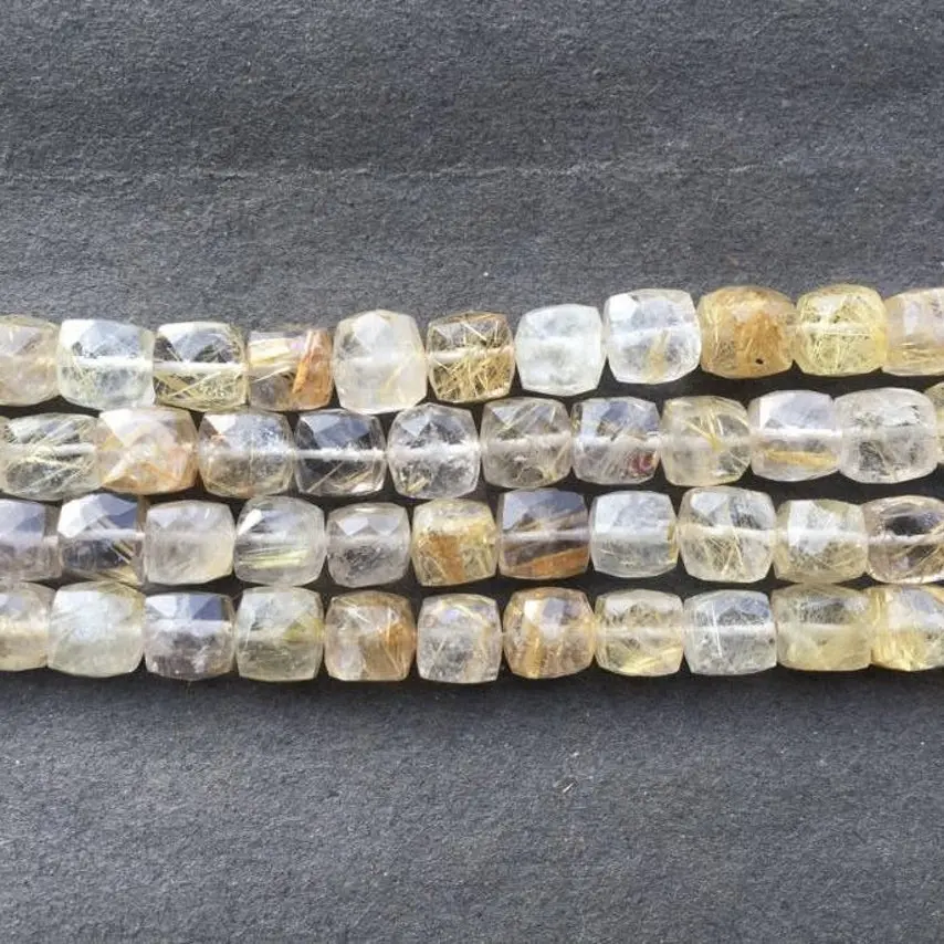 Cuentas de Rutilo Dorado Natural de 7mm 8mm, Cuentas Facetadas en Forma de Cubo, Calidad AAA, Cuentas de Piedras Preciosas Hechas a Mano, Nuevos Productos de Moda