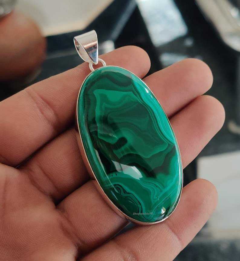 Colgante de plata hecho a mano de malaquita Natural 100%, colgante de plata de ley 925, colgante ovalado de malaquita para mujer, piedra natal de Tauro OEM
