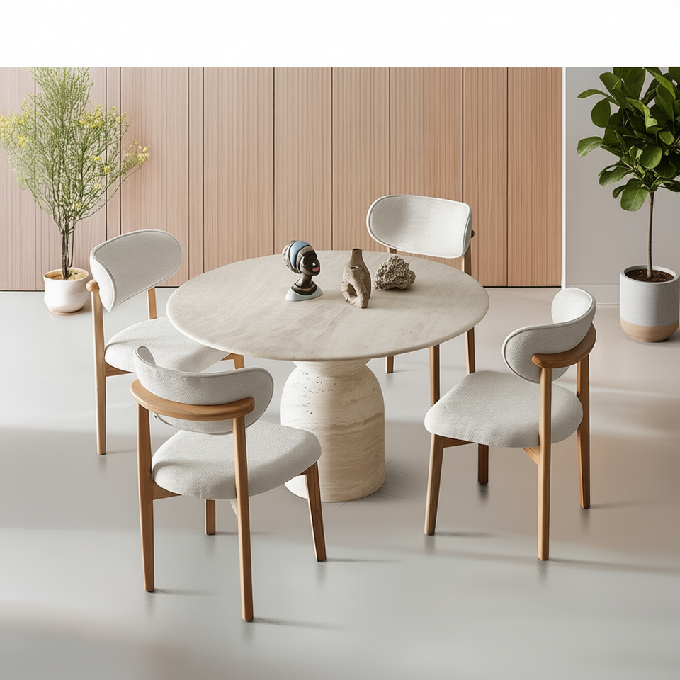 Mesa de Comedor Redonda de Mármol 100% Natural - Mueble Minimalista y Estable para Comedor de 4 Personas