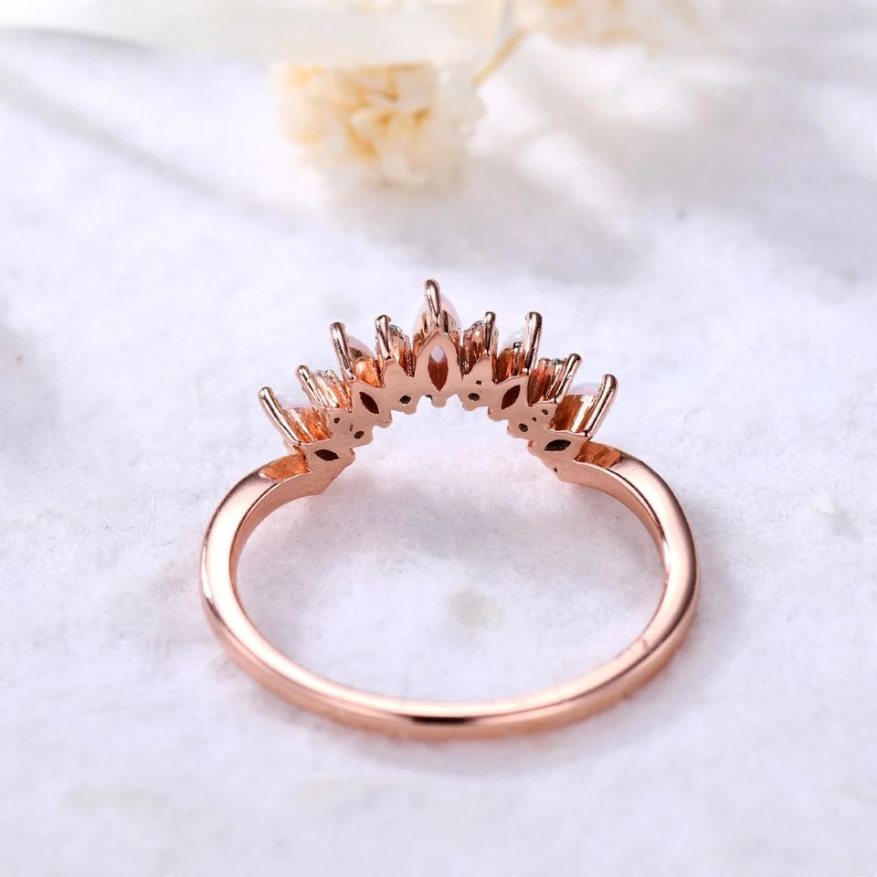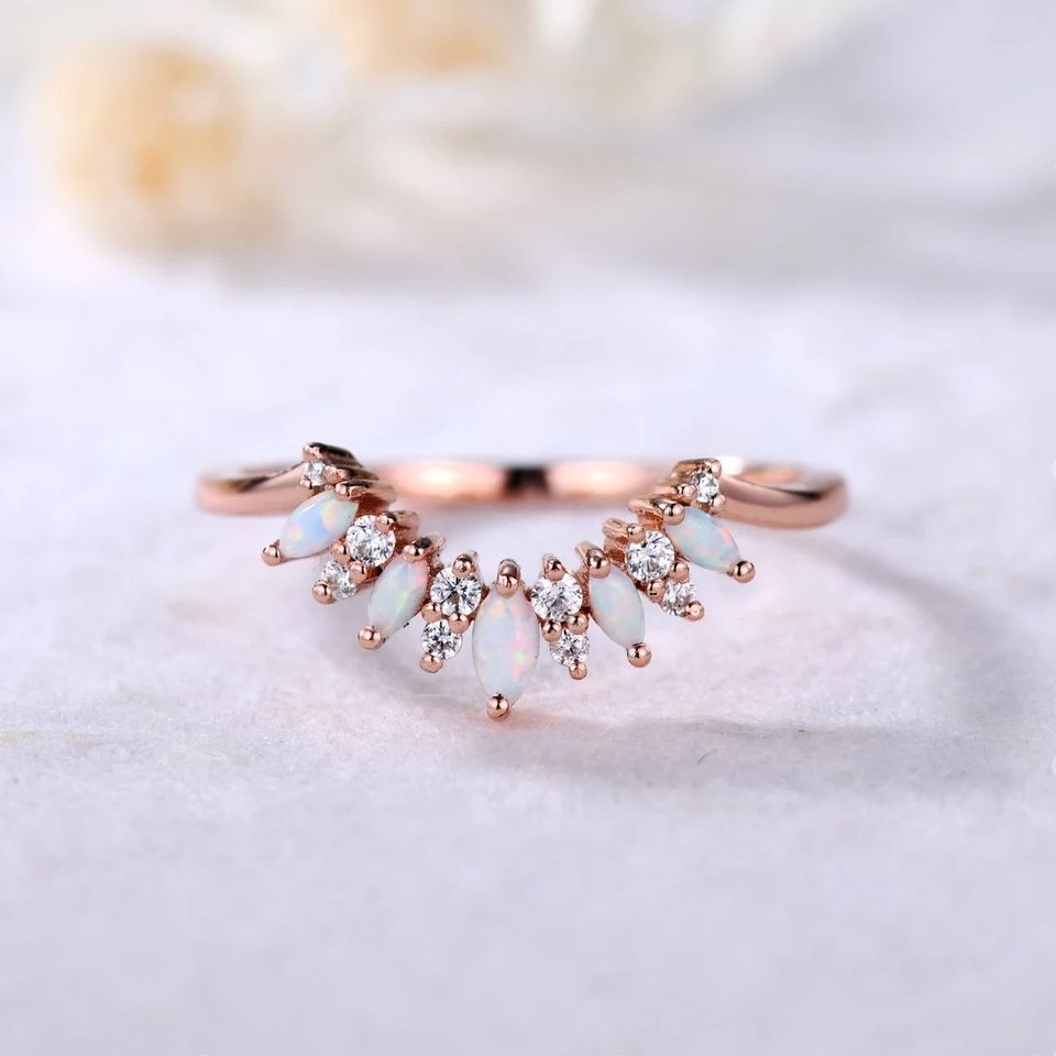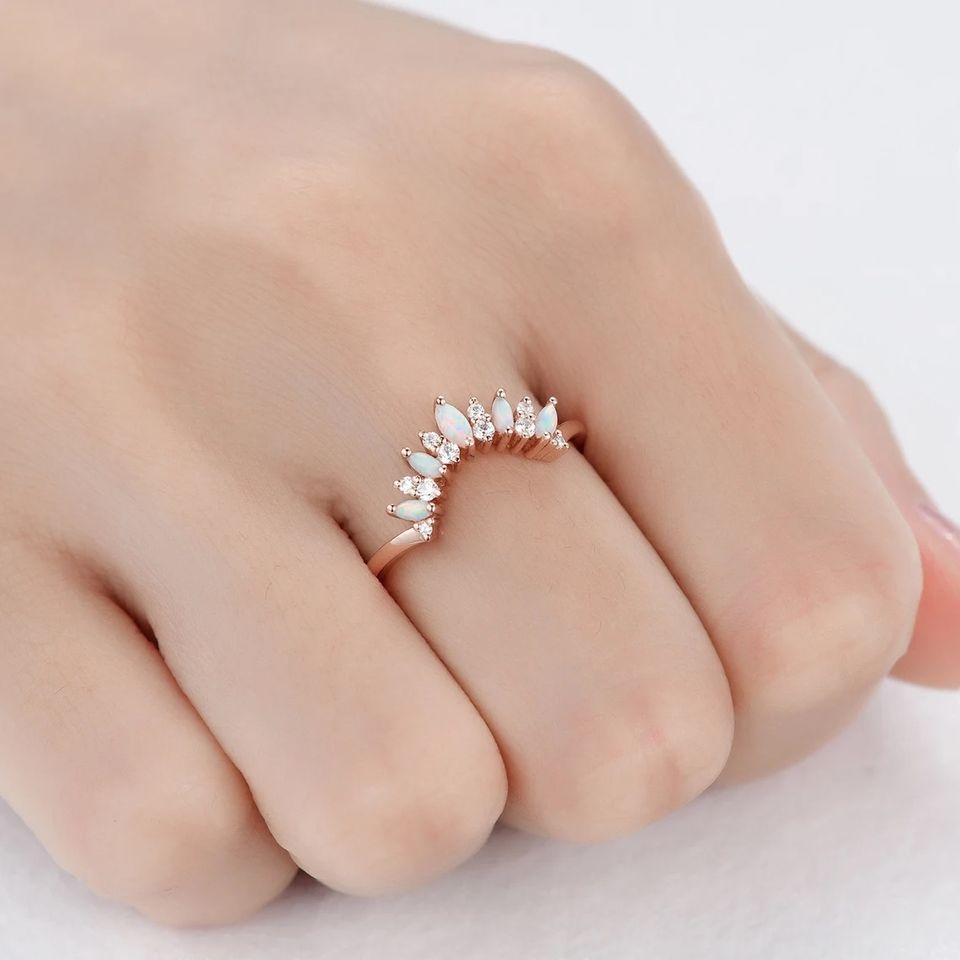 100% ópalo etíope de corte Marquesa Natural y anillo de diamante Real Natural anillo de compromiso apilable de oro sólido para mujeres hermosas