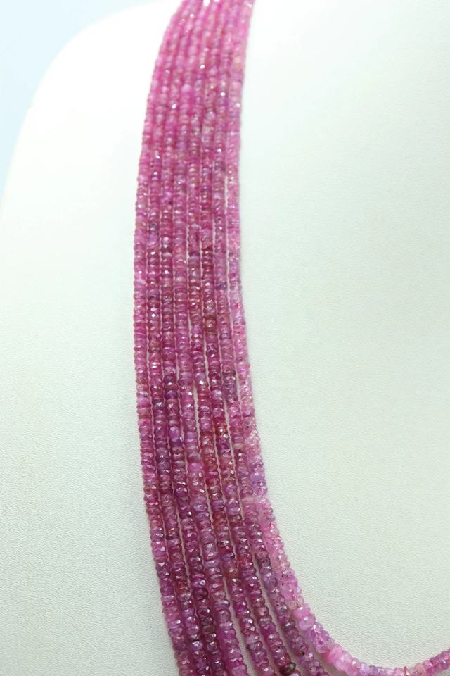 100% Natural Mogok rubí facetado Rondelle collar 8 hebras 2,5-4mm rubí zafiro cuentas