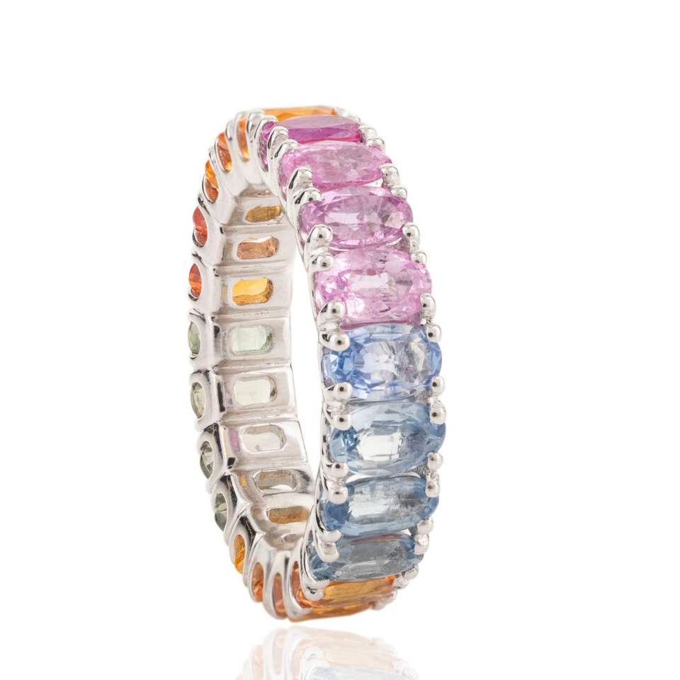 Anillo de banda de eternidad con ajuste de punta ovalada de múltiples piedras preciosas naturales 100%, joyería de boda de oro blanco sólido de 18 quilates, última colección