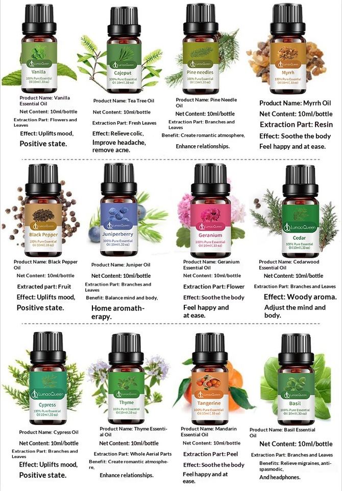 Aceites Esenciales 100% Naturales de una Sola Planta, Aceite de Masaje Aromaterapéutico Premium para el Cuidado de la Piel de Lujo