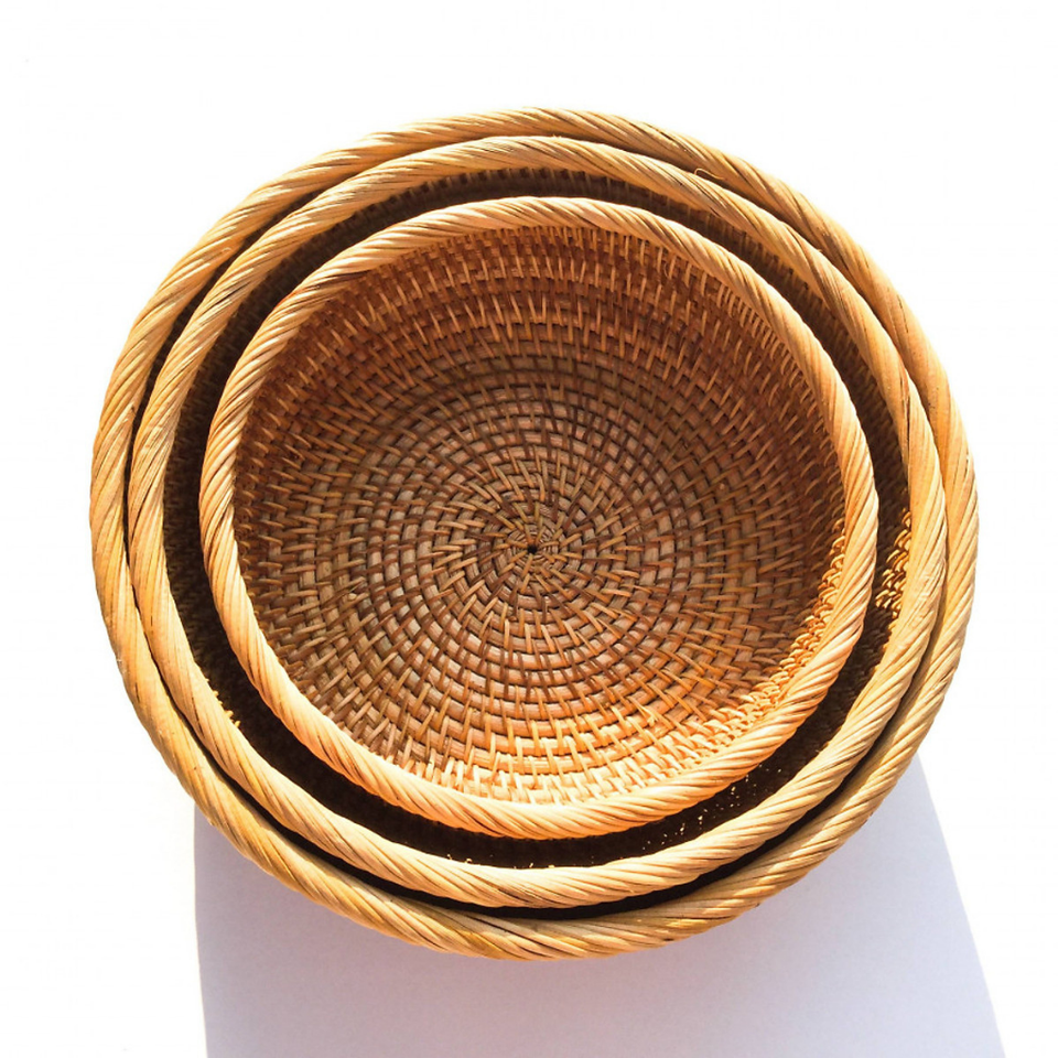 Cuenco de ratán hecho a mano de ratán Natural 100% que mezcla la tradición y la modernidad para una vida sostenible hoy en día a granel de alta calidad