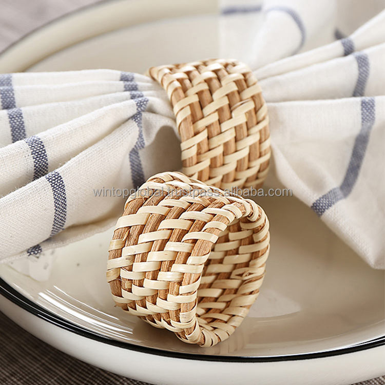 Servilleteros tejidos de ratán Natural 100%, juego redondo hecho a mano para decoración de bodas y fiestas, directo desde Vietnam