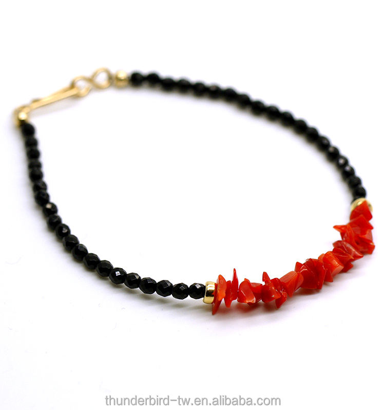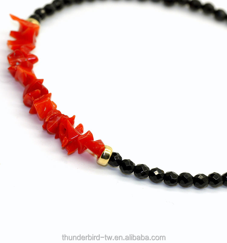 Nombre del producto:Coral rojo natural machacado con la pulsera facetada negro de los granos del Onyx