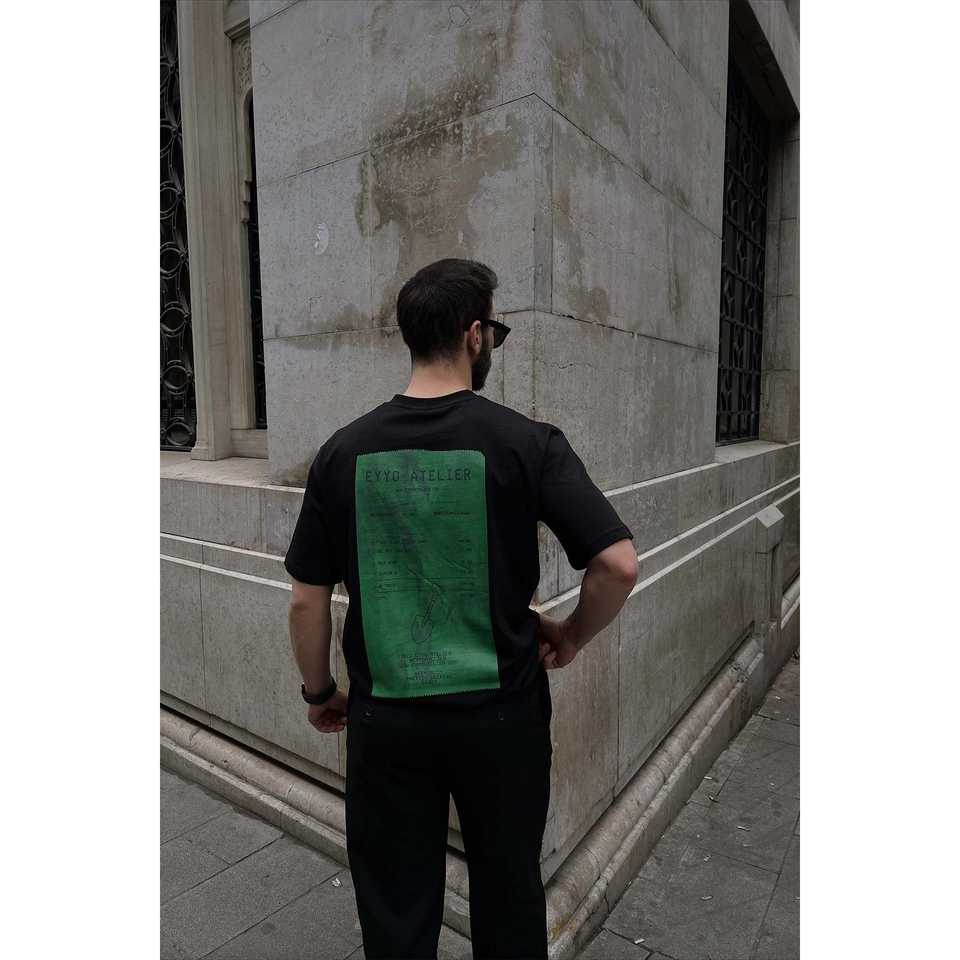 Camiseta Negra Extra Grande 100% Algodón Orgánico, Diseño Impreso en 3D en la Espalda, Bordado Personalizado, Peso 300 GSM
