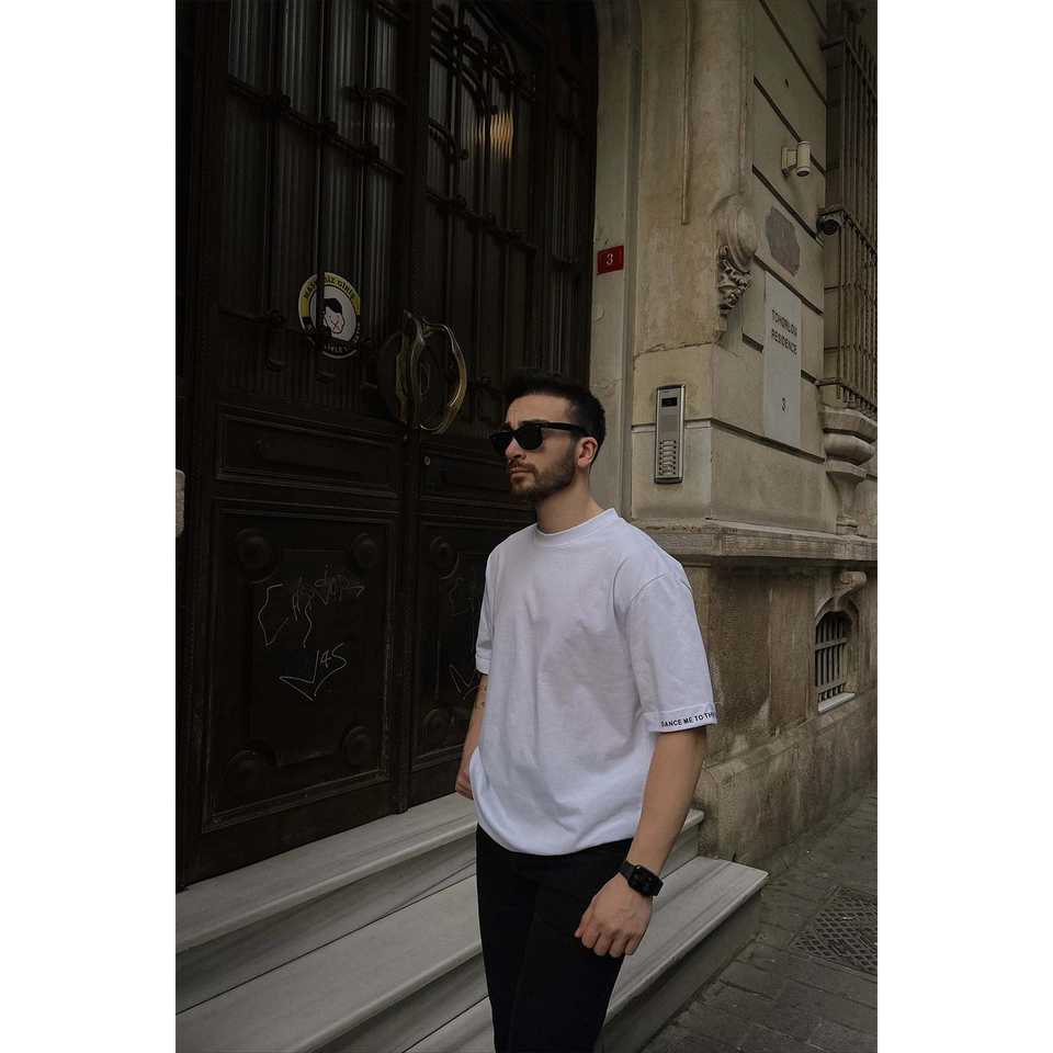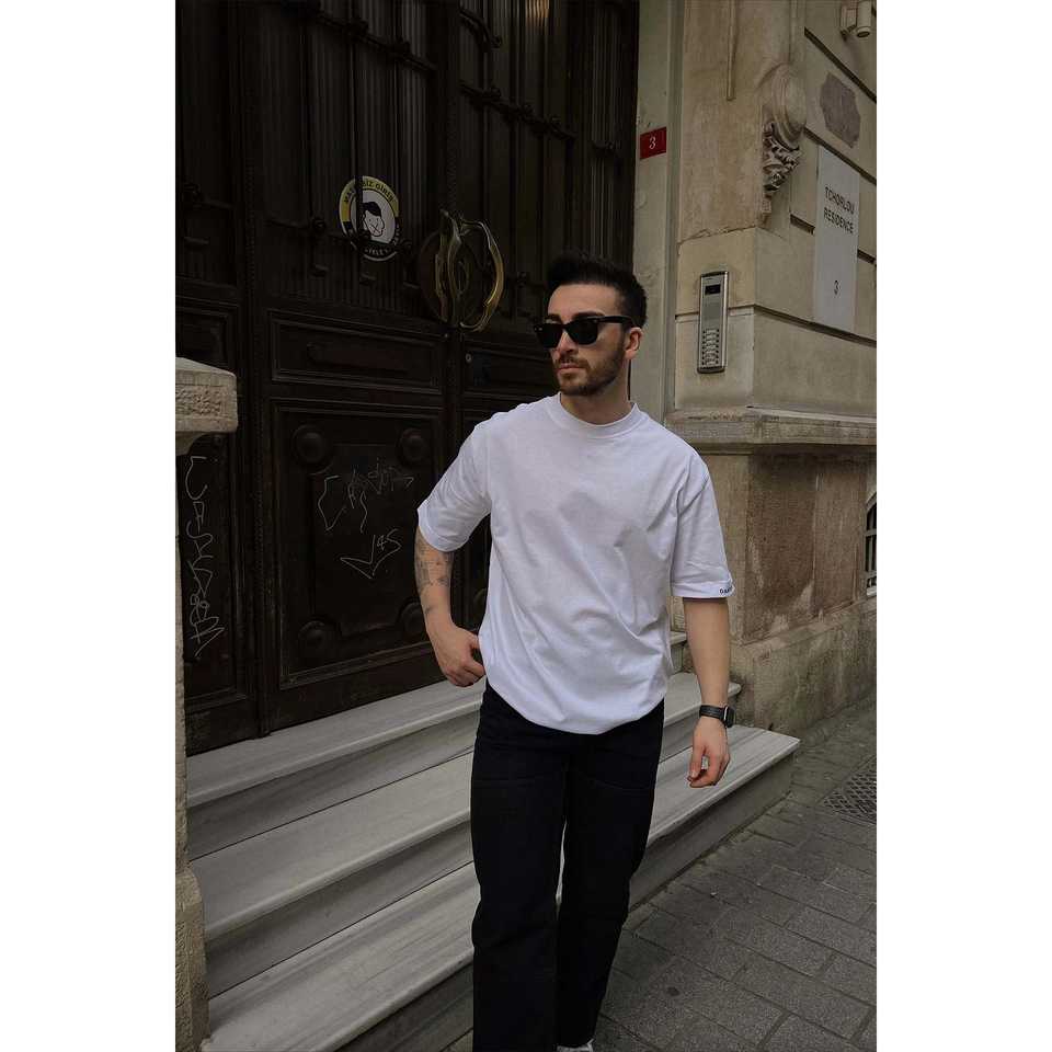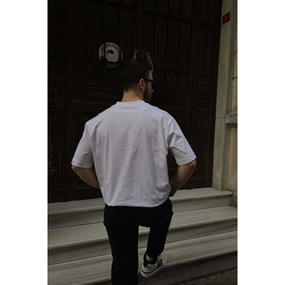 Camiseta de Hombre 100% Algodón Orgánico, Blanca, Estilo Básico con Estampado Gráfico en la Manga, Método de Serigrafía, Diseño Sólido