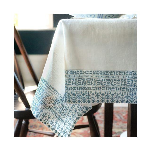 Mantel Rectangular 100% Algodón Orgánico, Medio Blanco con Bordado Floral, Resistente al Aceite, Venta al Por Mayor, OEM, ODM, Exportación a India