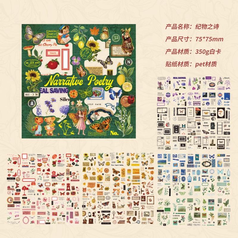 100 PET Box Stickers de Hot Anime Eslitehot From the Hot Poem of Thingshot Series Plant Ins Style Planner Decoración