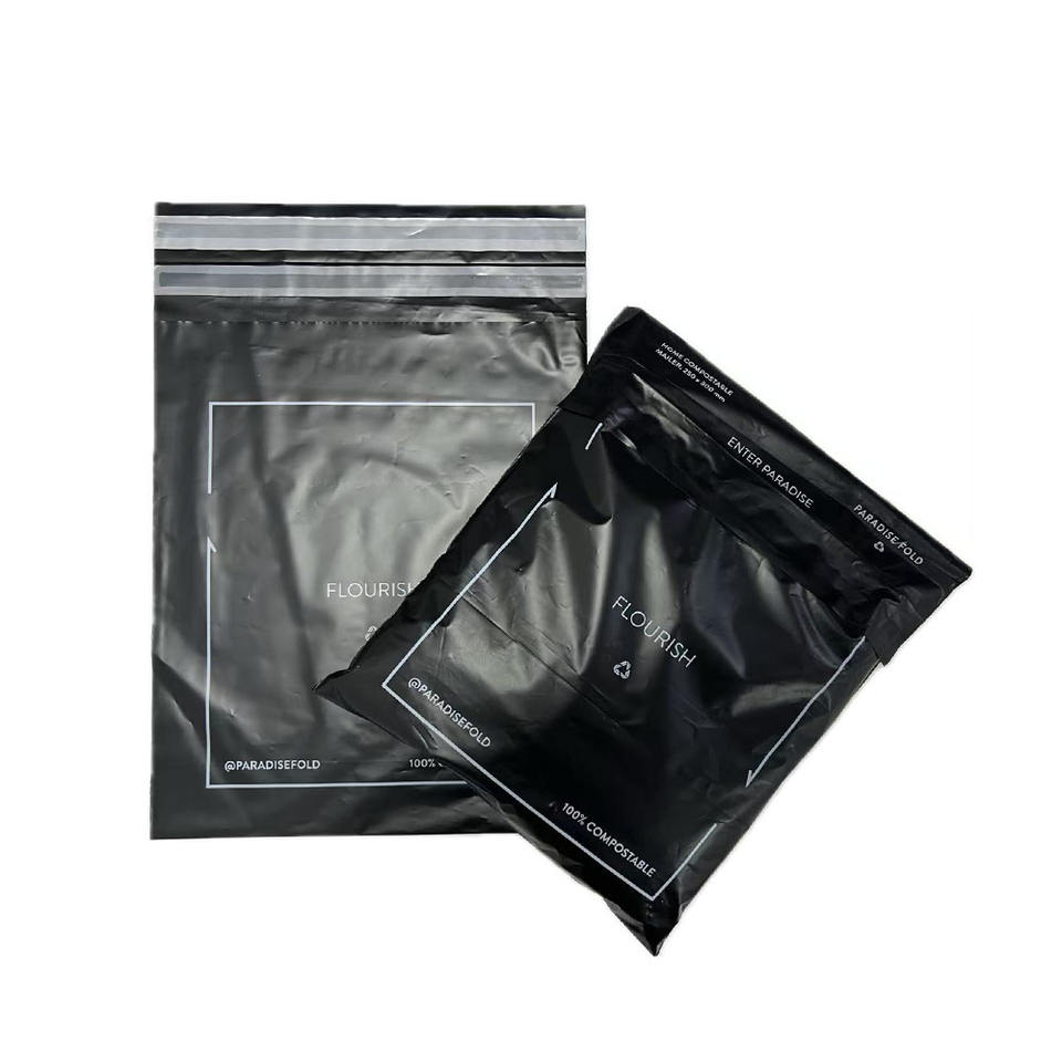 100% bolsas de almidón de maíz biodegradables PLA bolsa de embalaje de ropa compostable con grifo autoadhesivo