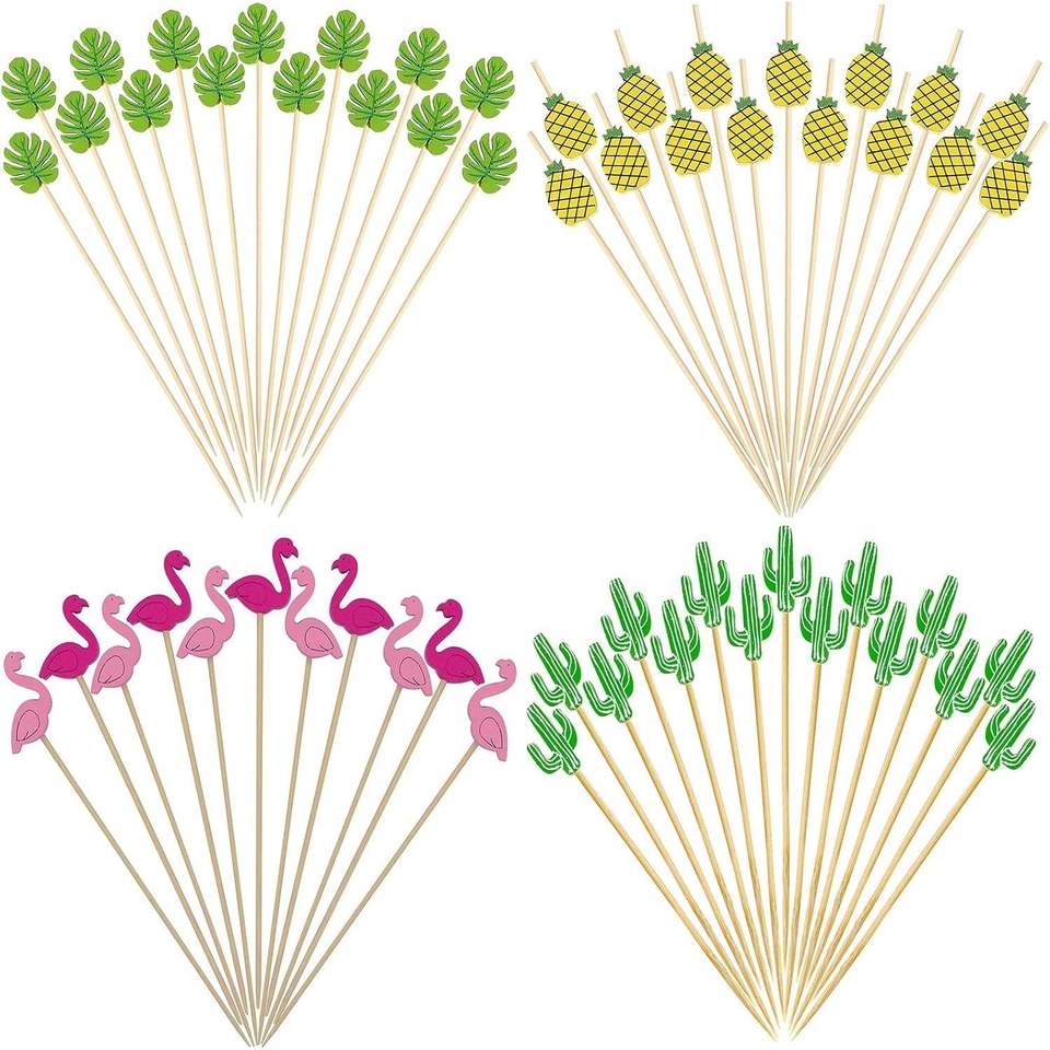 100 Palillos de Cóctel Monstera Surtidos, Palillos Decorativos para Aperitivos, Cupcakes, Sándwiches y Frutas para Fiestas
