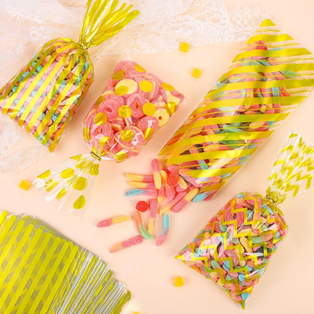 Paquete de 100 Bolsas de Celofán Biodegradables de Grado Alimenticio con Diseños de Papá Noel, Árbol de Navidad y Alces para Marcos de Fotos, Dulces Navideños, Nuevo