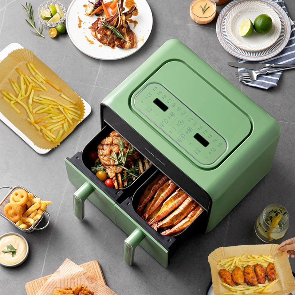 100 Uds revestimiento de freidora de aire rectangular rectángulo para Ninja DZ201/DZ401/DZ550/SL401 COSORI 9Qt 2 cesta freidora de aire Dual