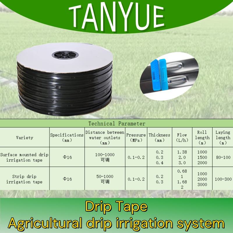 100% plástico DN 16mm sistema de riego por goteo subsuperficial gotero interior plano cinta de riego por goteo para riego de cultivos en hileras