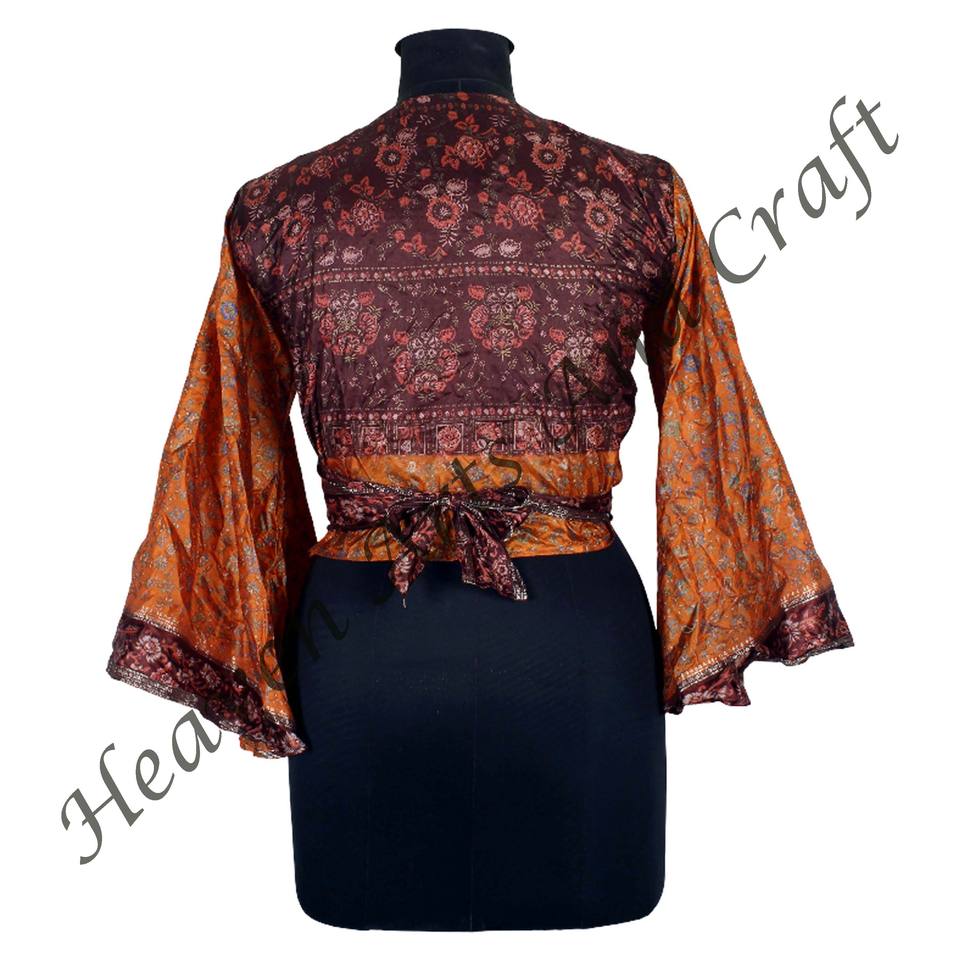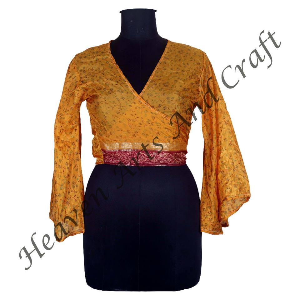 Número de Modelo:Recycle Sari Silk Tie Tops Bell Sleeves