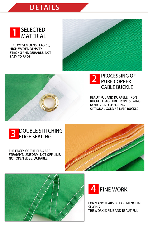 Bandera de Irlanda del Norte Personalizada de 3x5 pies, 100% Poliéster, con Asta de Fibra de Vidrio, Colores Verde, Blanco y Naranja, Impresión Digital