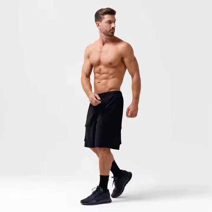 100% poliéster código negro 2 en 1 estilo informal hasta la rodilla pantalones cortos Cargo cierre con cordón secado rápido transpirable contraste impreso