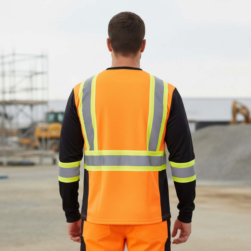 Camiseta de Seguridad de Manga Corta 100% Poliéster, 2 Tonos Negro y Amarillo, Cinta Reflectante, Impermeable, para Hombre