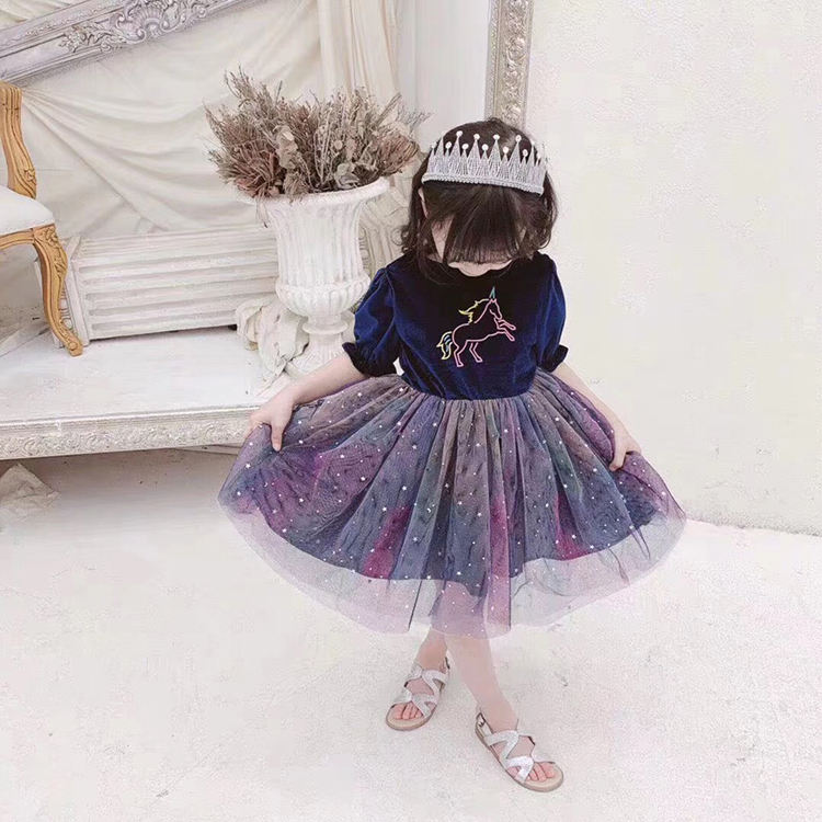 Tela de tul para vestido, 100% poliéster, degradado, colorido, brillante, con lentejuelas de luna y estrella