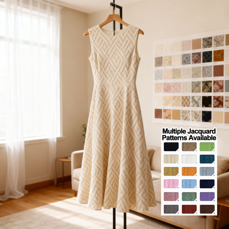 Tela de Vestir Transpirable de Jacquard con Flores 3D, 100% Poliéster, Tejido de Punto con Spandex para Ropa de Mujer