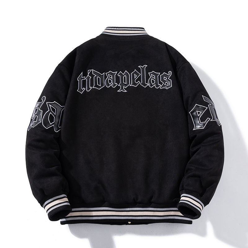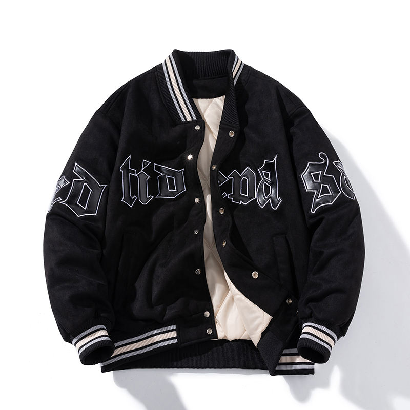 100% Material de poliéster Ajuste cómodo Hombres Varsity Chaqueta Bordado Frente Transpirable Casual Venta caliente Cantidad a granel Sólido