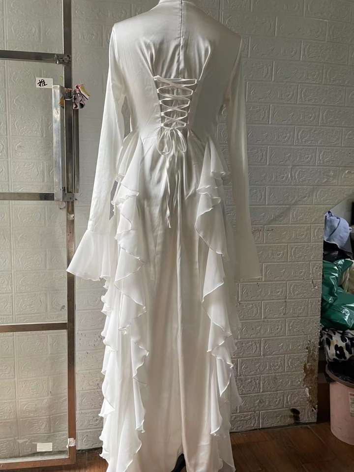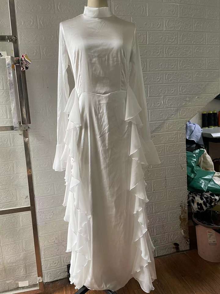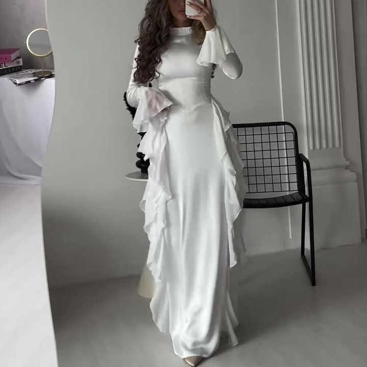 color liso cuello redondo manga acampanada longitud completa volantes modestos estilo musulmán diseño de fiesta vestido largo