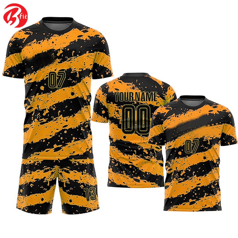 Jersey de fútbol de transferencia de calor 100% poliéster ropa de fútbol traje de fútbol de alta calidad nuevos conjuntos de uniformes de diseño personalizado para equipo deportivo
