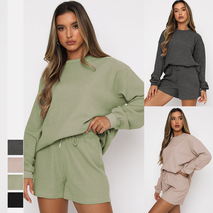 Conjuntos Deportivos de Dos Piezas para Mujer, Sudadera Holgada Informal de Cuello Redondo y Pantalones Cortos, 100% Poliéster, para Invierno
