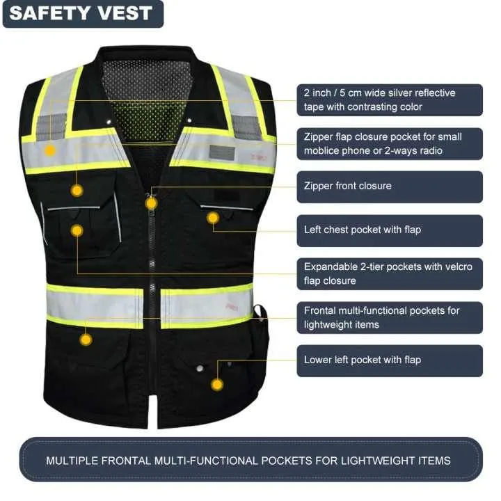 Chaleco de Seguridad Reflectante de Alta Visibilidad 100% Poliéster con Cremallera Frontal, Chaleco de Seguridad Económico con Logotipo