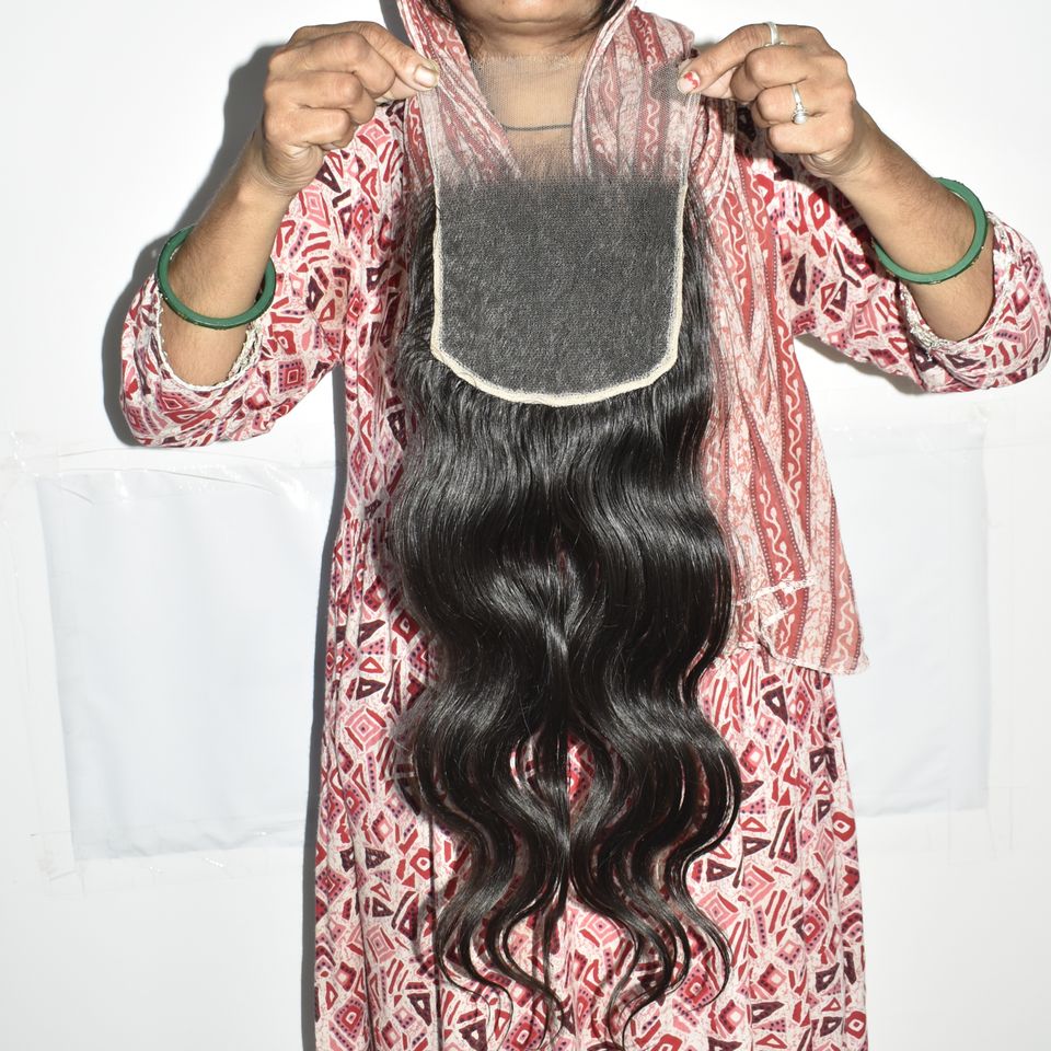 Extensiones de Cabello Humano 100% Premium con Doble Trama a Máquina, Cierre HD 6*6, Ondulado, para Tejido Genius Weft, Sin Procesar