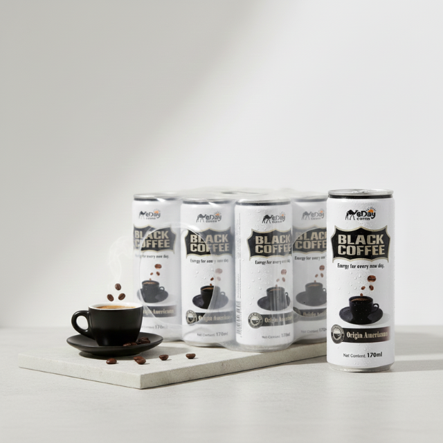 Extracto de Café 100% Puro, Sin Azúcar, Bajo en Calorías, OEM/ODM, Bebida de Café Negro Americano Enlatado de 170 ml, Marca Privada