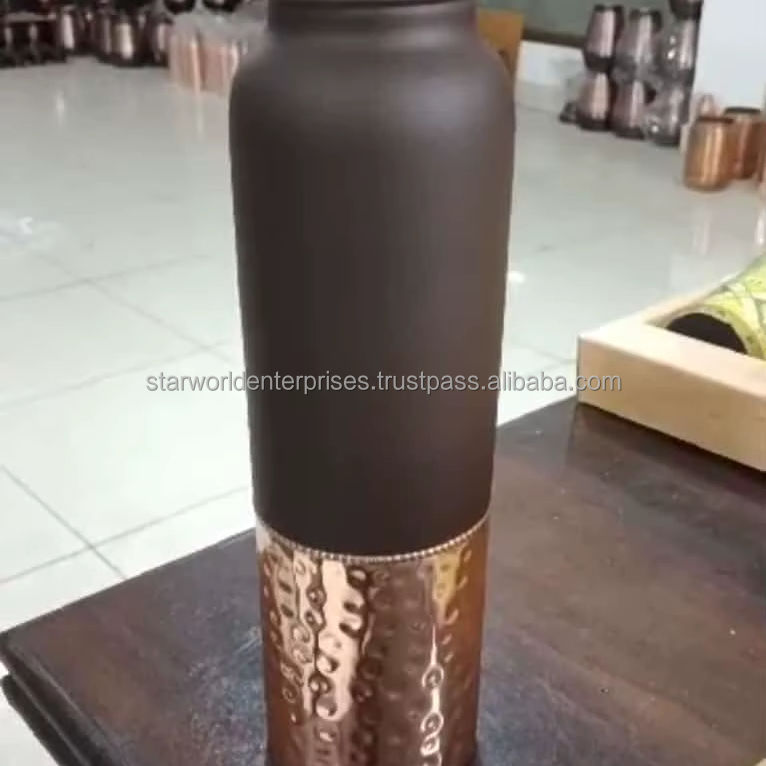 100% botellas de agua de cobre puro. Hechas a mano por artesanos expertos en Sambhal, Uttar Press, estas botellas están hechas con