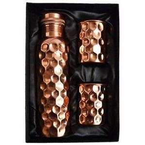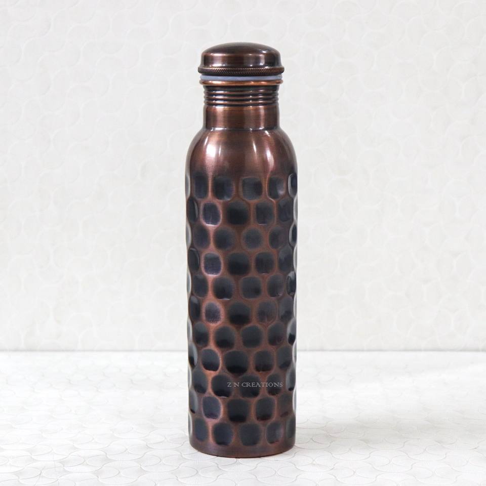 Diamond Pattern Copper Water bottle with Polished