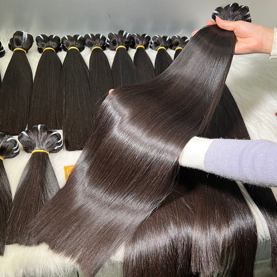 Extensiones de Cabello Remy Vietnamita 100% Puro Natural Virgen, de Primera Calidad, Doble Trama a Máquina, Crudo Sin Procesar, Liso Natural
