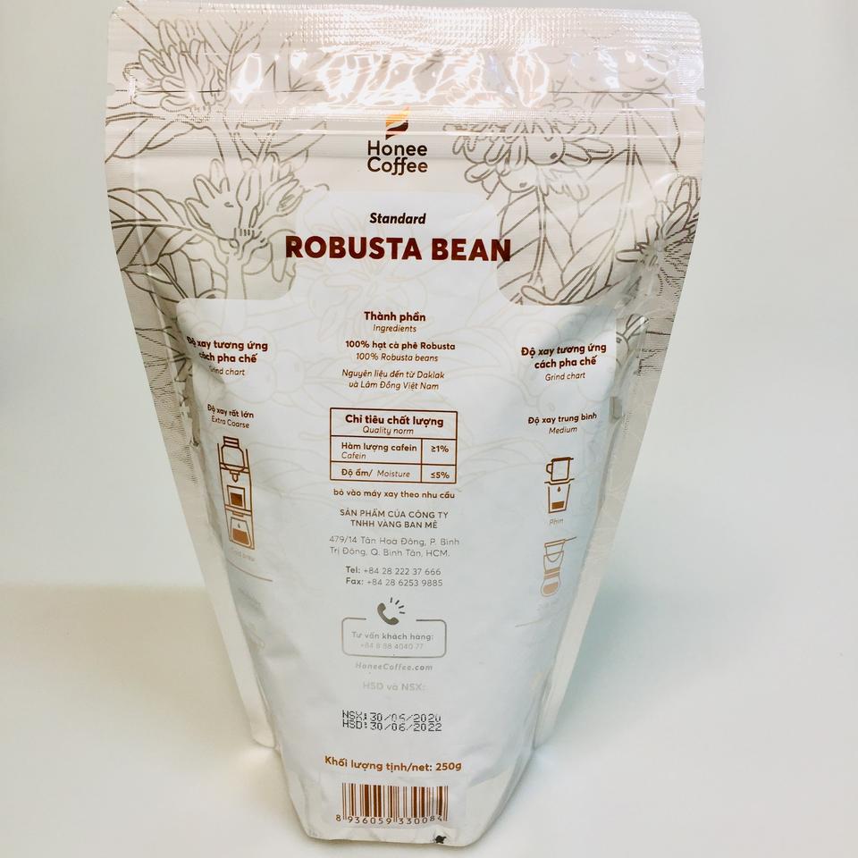 100% granos de café tostados puros ROBUSTA 250 g/bolsa de las tierras altas centrales Vietnam precio de fábrica de alto estándar para exportación