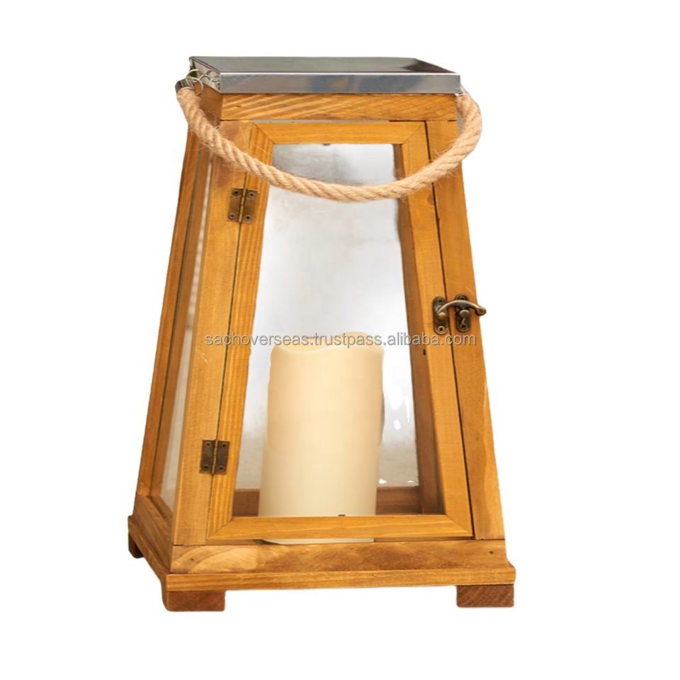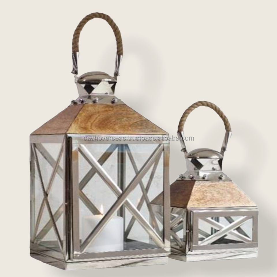 Vela de Metal de acero inoxidable 100% puro, linterna con parte superior de madera para complejo turístico, playa, bodas, Juego de 2