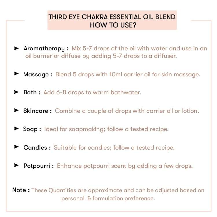 Mezcla de Aceites Esenciales 100% Puros para el Chakra del Tercer Ojo, Terapéutica, con Sándalo, Ylang-Ylang y Geranio, para Hidratar y Aclarar la Piel